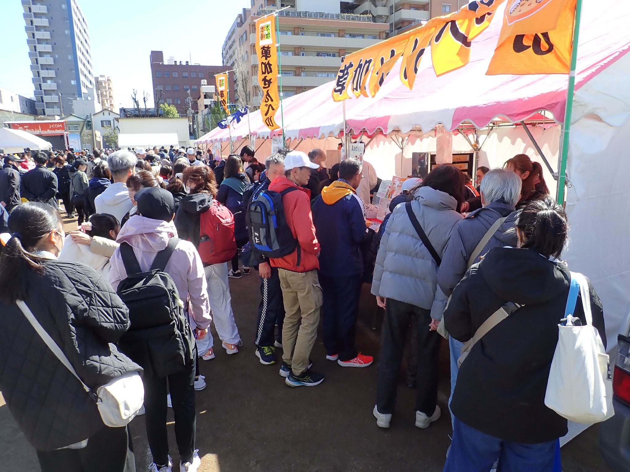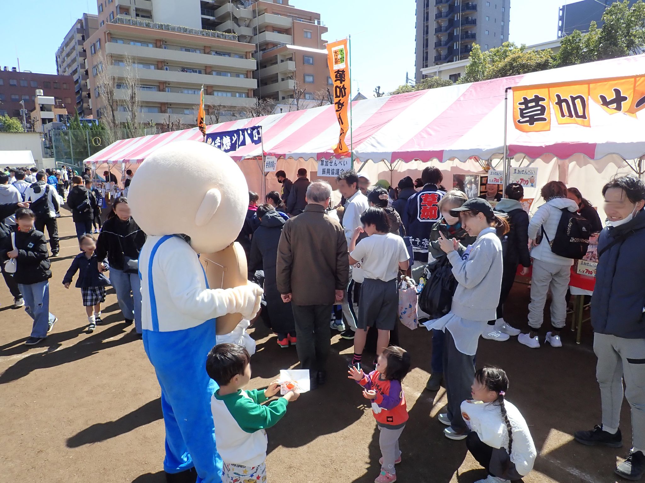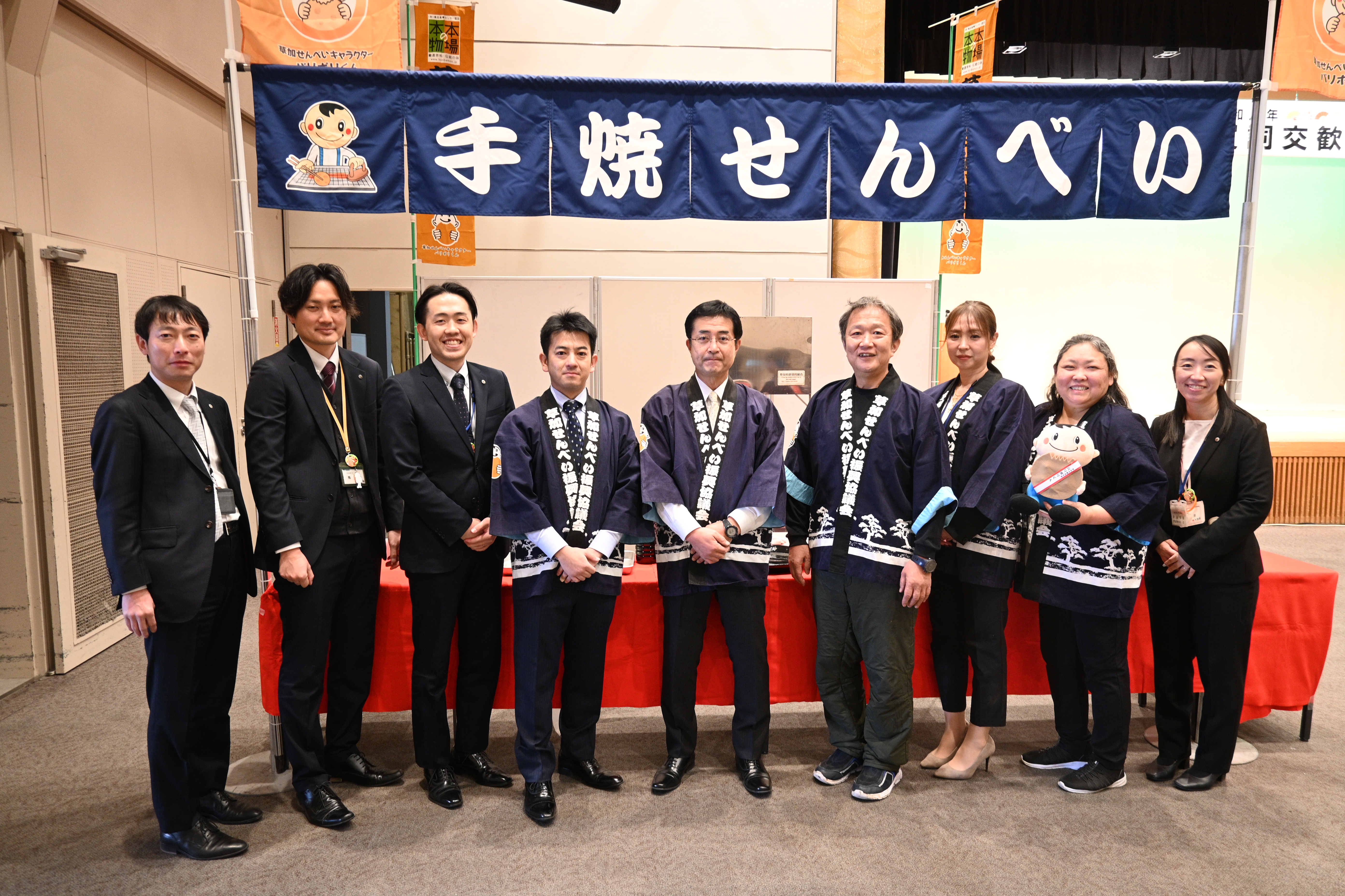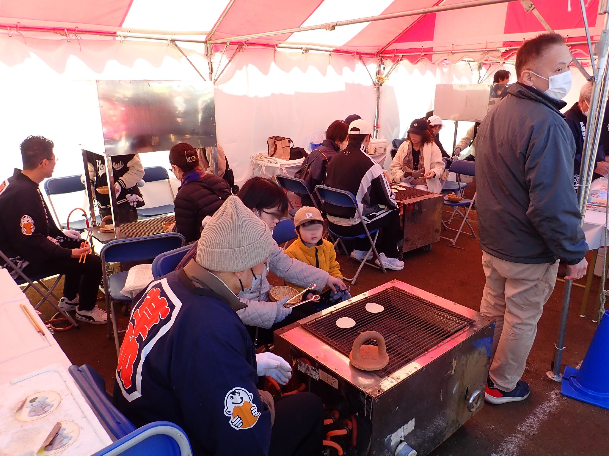 冷たい強風が吹く中での開催でしたから、暖を取りながらの手焼き体験は大盛況でした。 給水所ならぬ「久助所」では、草加せんべいの補給が出来てたくさんのランナーが足を止めてまで立ち寄ってくださり、パリポリくんともハイタッチができましたね。