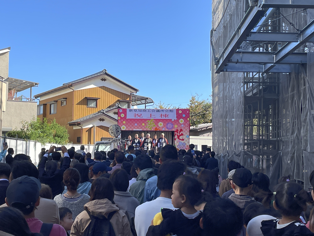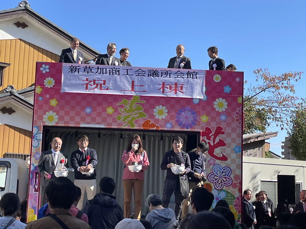 令和6年11月17日 来年3月の竣工に向けて、草加商工会議所の会館建替えに伴う記念事業として上棟式が開催されました。