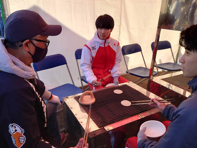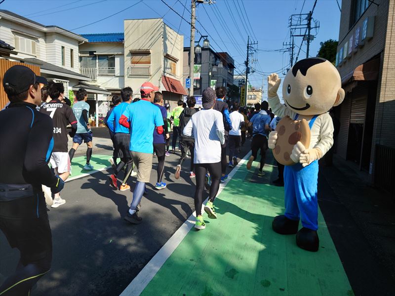 レース前には大型ビジョンにおいて草加市と草加せんべいの紹介動画を公開していただき、市外や県外の方々にも草加せんべいを知っていただく良い機会となりました。