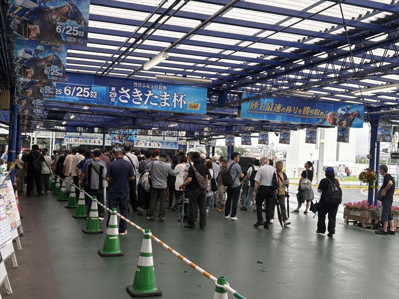 当日は、朝から生憎の空模様でしたが、「さきたま杯」というグレードの大きいレースがあり、6,809人の来場者の方で賑わいました。 持っていったおせんべいもほぼ完売となり、草加せんべいの人気を改めて実感しました。