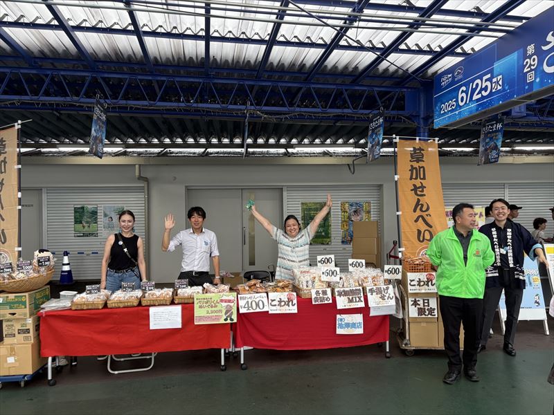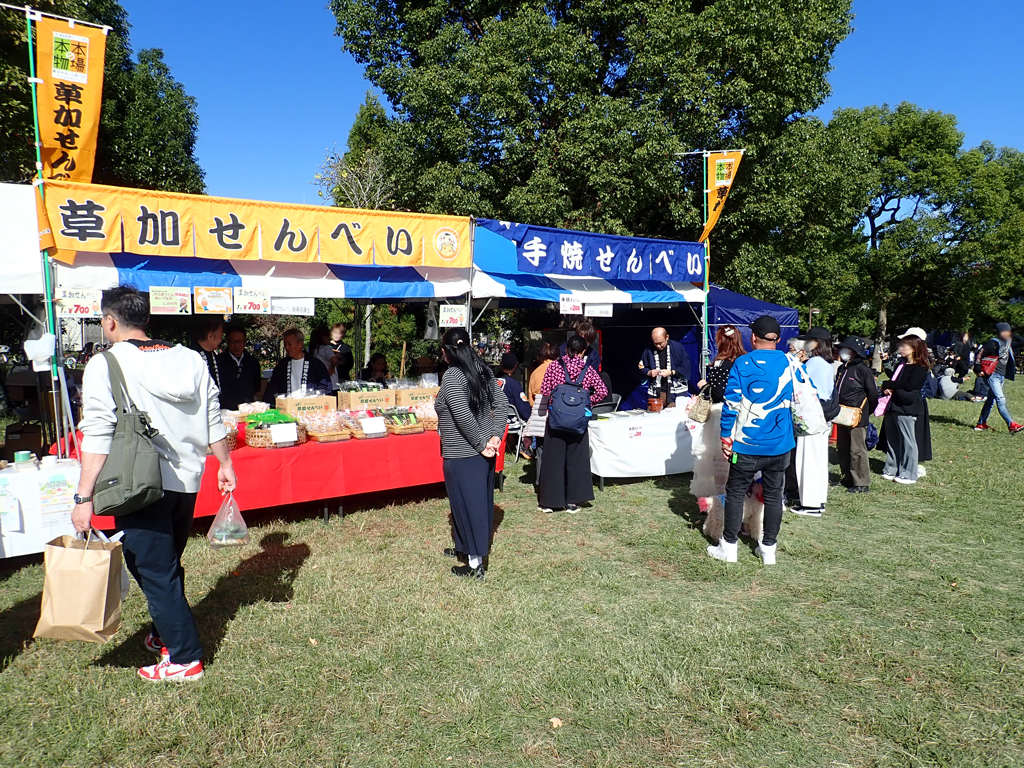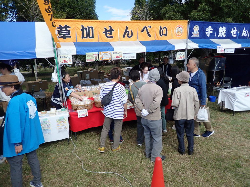 当日は晴天に恵まれ、「今年も買いに来たよ」、「ここで買えることを楽しみにしていたよ」と、たくさんの来場者の方に草加せんべいを手にとっていただきました。