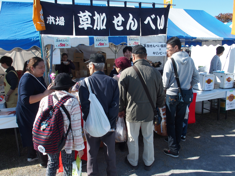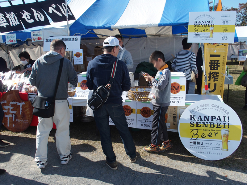 令和元年11月16・17日まつばら綾瀬川公園に於いて、食と農林業ドリームフェスタに出店しました。 草加せんべいの販売はもちろんですが、キリンビール㈱埼玉支社と共同開発したビールに合う草加せんべいの販売を 行い、大変ご好評をいただきました。
